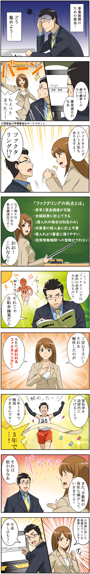 ここでは銀行からの融資に頼らない「ファクタリング」という資金調達方法について、漫画で解説します。